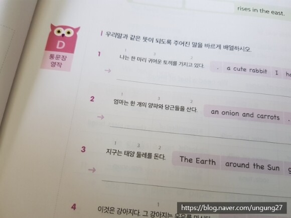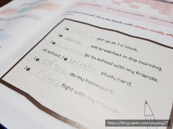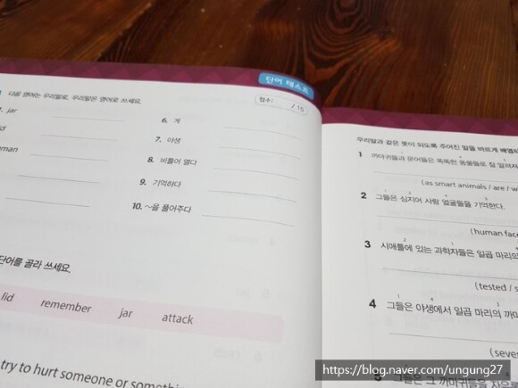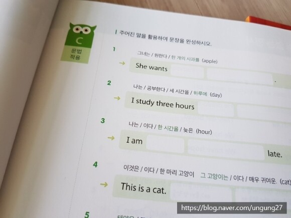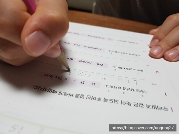 문장을 완성해서 써보게 하는 부분은