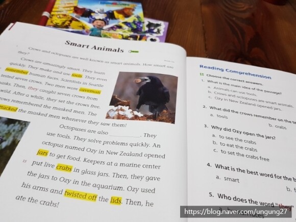 스토리를 이해하면서 문장 구조에서 적절한 단어를 적게 한다거나