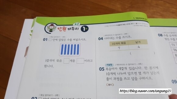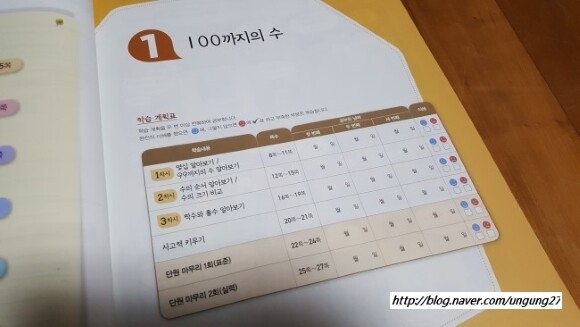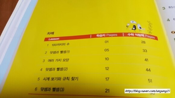 각 단원에 따라 학습지 페이지와 수학 익힘책 페이지가 따로 나와있어서