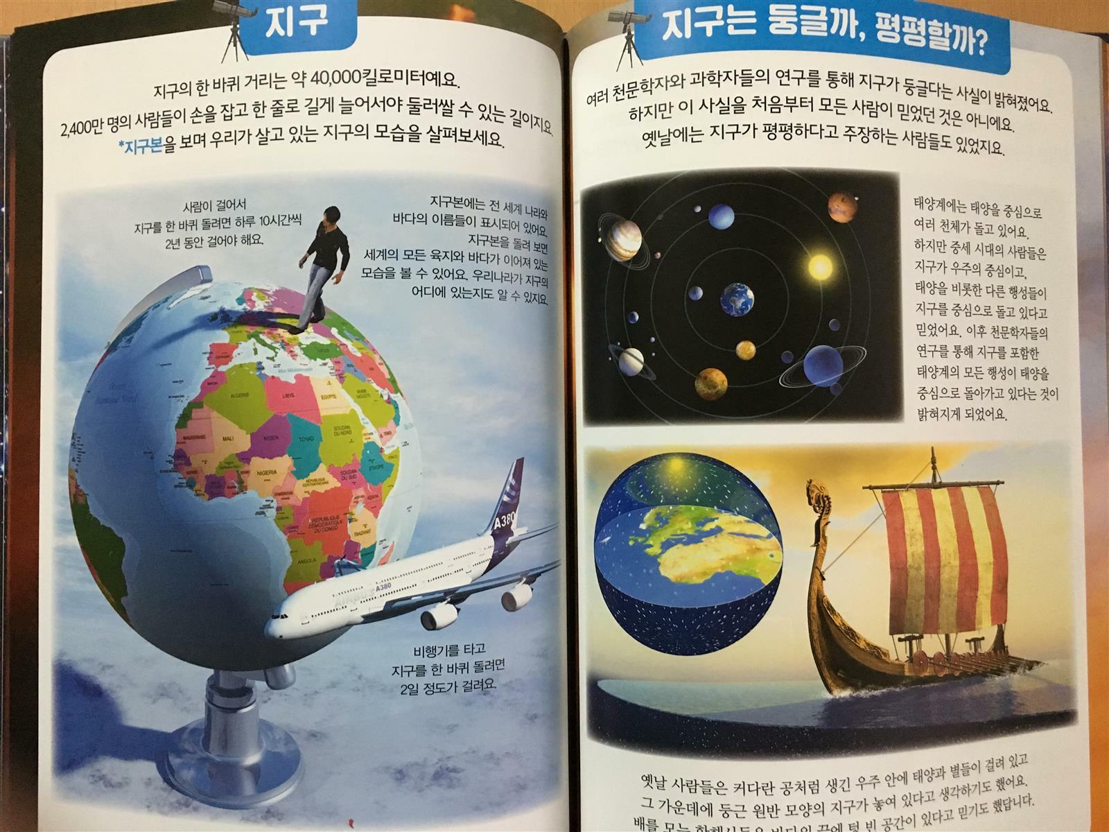 옛날에 지구가 어떤 모습이었는데 당시의 사람들이 생각하던 지구의 모습이 잘 표현되어도 있어 과학적 상식이 부족한 시대에서 일어날수 있는 현상이 아닌가 싶고 자전과 밤낮의 변화의 원인을 그림과 글로 잘 설명해주고 있어 남녀노소 누누든지 관심있는 분이라면 쉽고 재미있게 과학적 지식을 접할수 있지 않나 싶네요.
