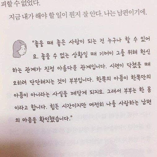 남편의 이야기의 끝부분에 아내의 짧은 글들이 적혀있다.