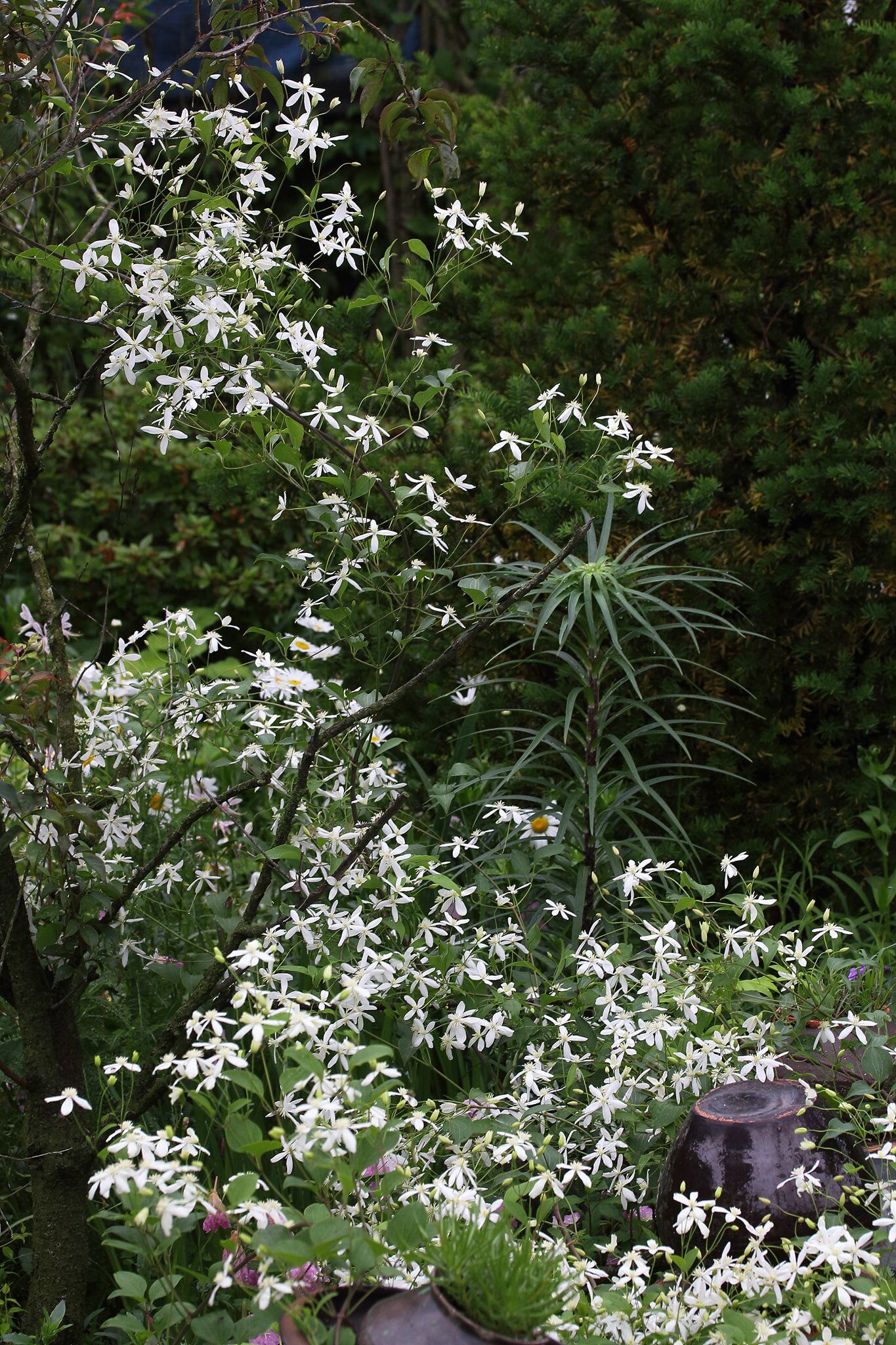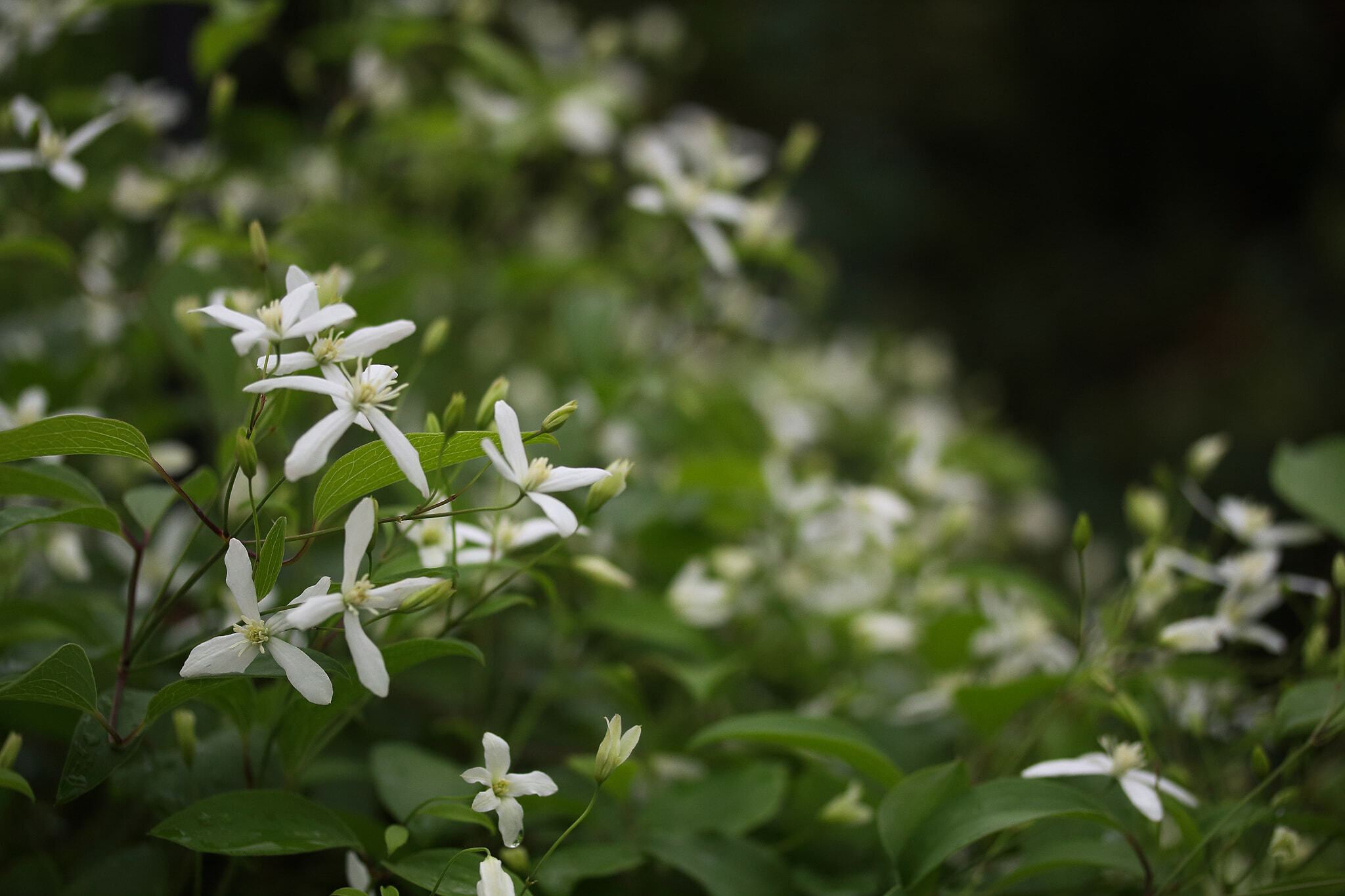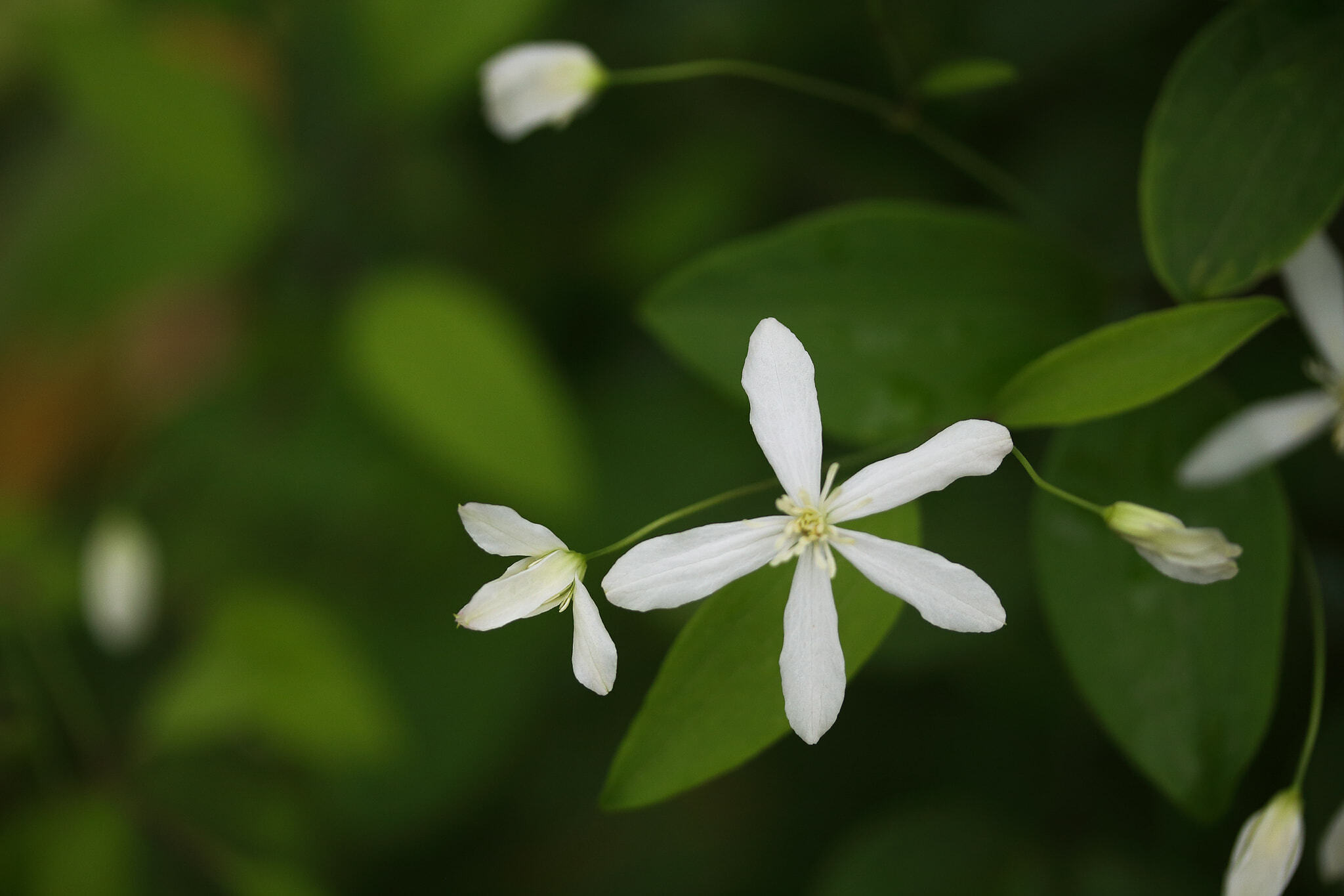 개미머리라고도 하는 큰꽃으아리는 품위 있는 모습에서 연상되듯 '아름다운 마음'이라는 꽃말을 가졌다.