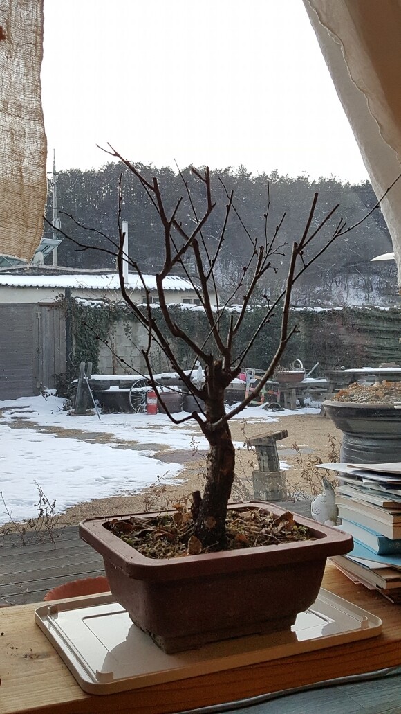 언제부턴가 매화분 하나를 갖고 싶었다. 마침 제법 세월이 묵은 매화분을 보고 선듯 손에 들었다. 과하지 않게 꽃망울을 맺고 있어 조만간 붉은 속내가 전하는 향기를 맡을 수 있겠다 싶어 흡족한 마음이다.