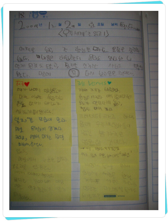 6. 마지막으로 우주 세계에 정리했던 포스트잇을 모두 모았더니