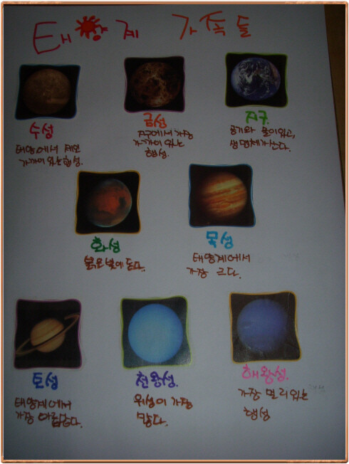 1. 태양계 가족들을 모두 찾아서 간단하게 정리해 보았다.