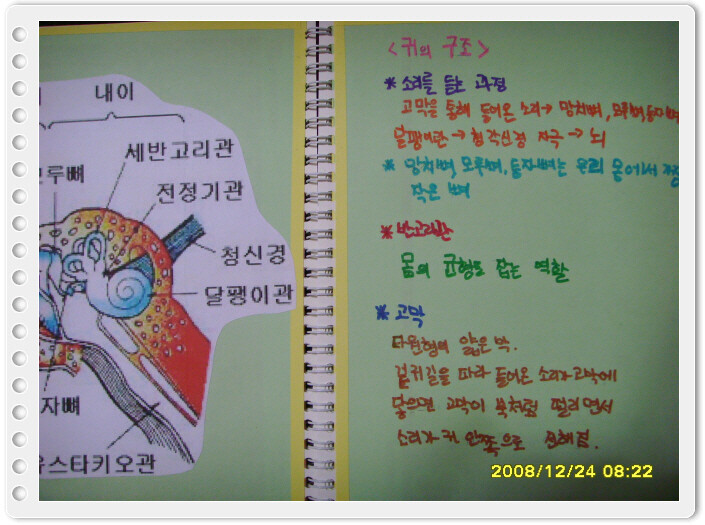 귀의 구조를 알아 보았어요.