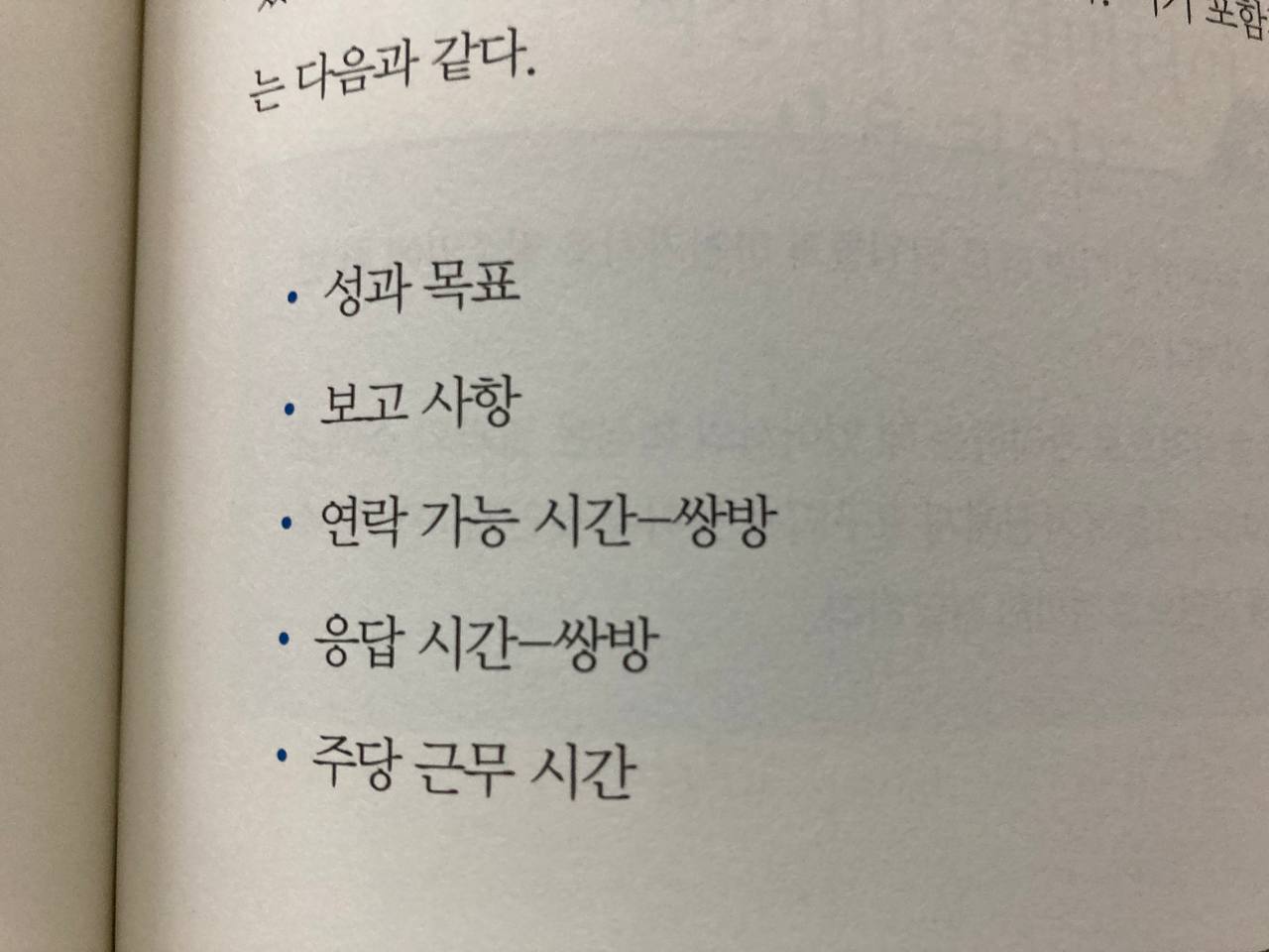 이 책의 36장은 효과적인 원격근무 방법을 알려줍니다. 가장 중요한 점은 요구사항을 서면으로 전달받는 점입니다. 보통 회사에서 대면할 때에는 밥 타임이나 퇴근 전에 아 그 기능 빠졌는데 바로 추가 가능? 이러면서 말하는 팀장이 많습니다. 요구사항 명세서와 기획서에 명확히 있는 점이면 군말 없이 기능 개발을 합니다. 자신의 실수이기 때문이죠. 하지만 팀장님이 급하게 추가하거나 포괄 임금이면 역제안합니다.