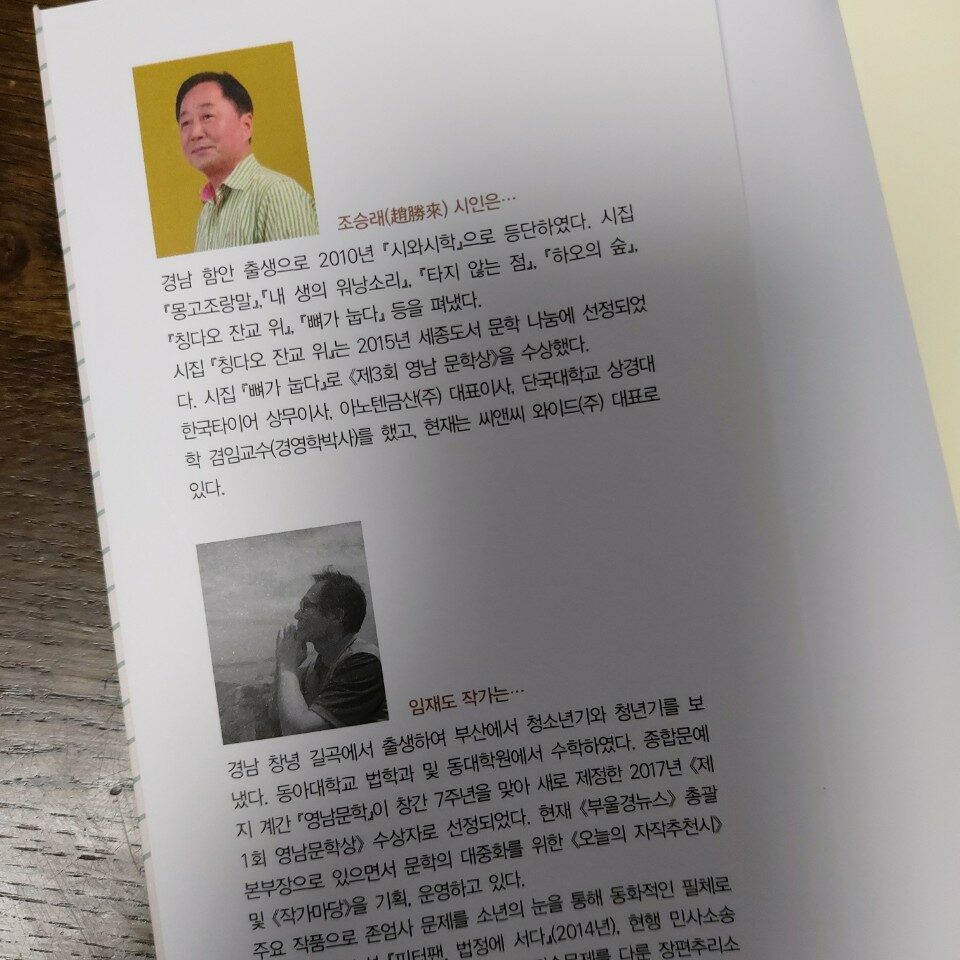 특이하게도 조승래 시인과 임재도 작가의 콜라보로 만들어진 책으로 책의 구성은 몽고조랑말로 시작하는 첫 번째 여행지부터 마지막 부전역이 실린 여덟 번째 여행지까지 이어진다.