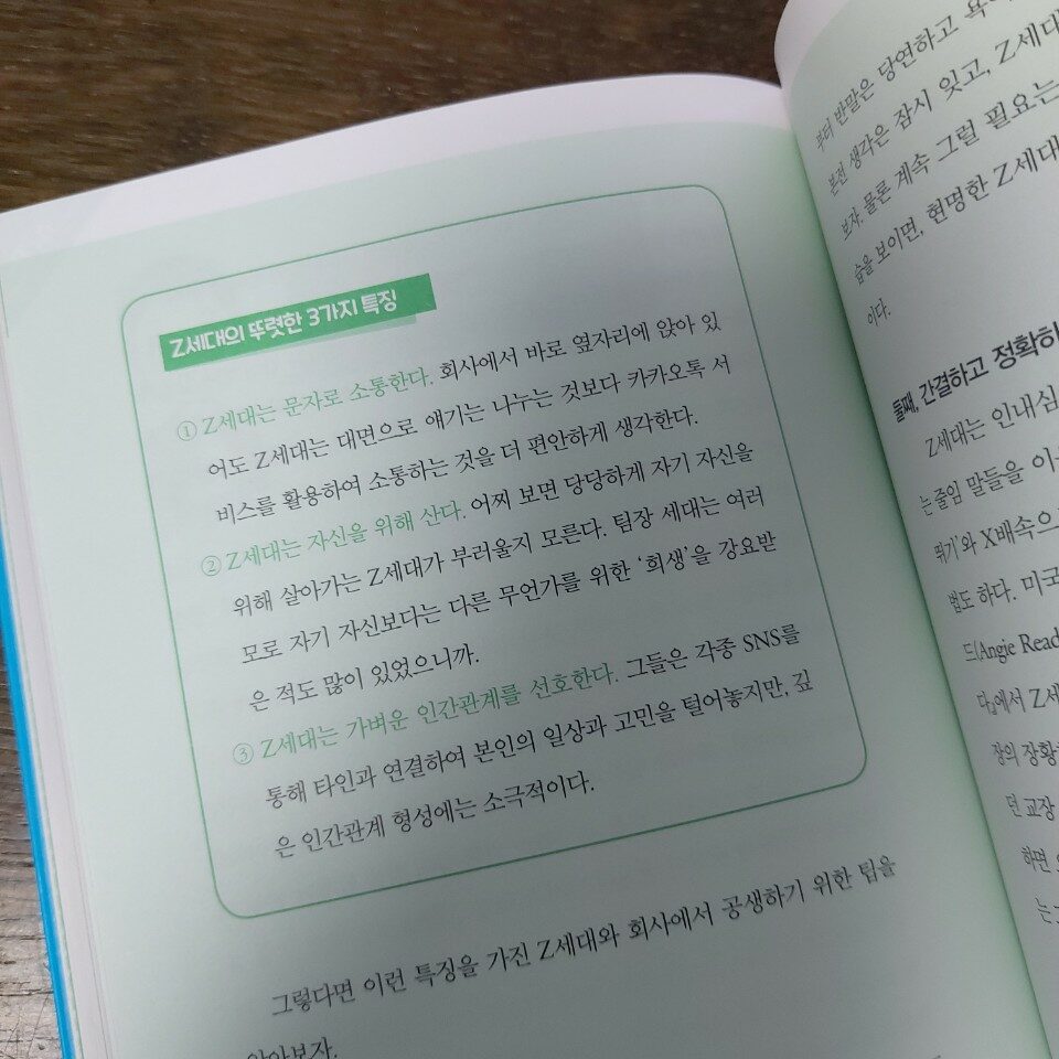 특히 이 책의 저자가 포인트를 잘 잡았다고 느낀 대목들은 실제 현재 이슈가 되고 있는 꼰대 상사와 밀레니얼 세대, Z세대 직원이 공존하며 벌어지는 여러 문제들에 대한 노하우와 팁을 풀어낸 내용들이었다.