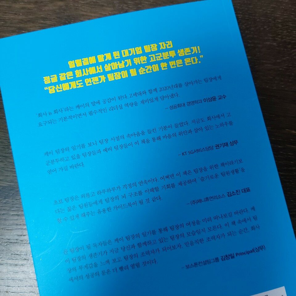 솔직히 팀장 리더십에 대해서라면 유수의 경영대학 석학들과 글로벌기업 CEO들의 화려한 성공담을 담은 책들이 널렸는데 이 책이 그래도 돋보이고 집어든 이유라면 당장 현실에서는 국내 기업의 주변에서 흔하게 볼 수 있는 나와 비슷한 사람들의 이야기가 더 도움이 되고 와닿기 때문이다.
