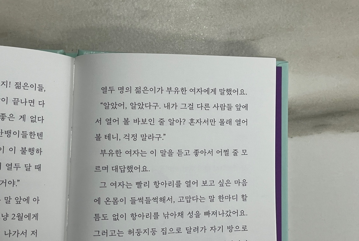 아무래도 시간의 흐름에 따라 아이들의 인식도 달라졌을 것이고, 디지털화 되면서 다양한 방법으로 사랑을 이야기 하는 것을 느끼고 있어요. 그러다보니 아이와의 대화에서도 그런 세대차이를 느끼기도 하는데요. 책을 읽으면서 신경써야 하는 부분이 많은 것을 새삼 알게 되었던 것 같아요. 아직 아이가 이 내용을 다 소화하기엔 어리다는 생각이 들어 중학생 이상 친구들에게 더 맞는 내용이라고 생각이 되고고, 그 시기가 되었을 때 당황하지 않도록 부모님이 먼저 읽어보는 것도 추천합니다.
