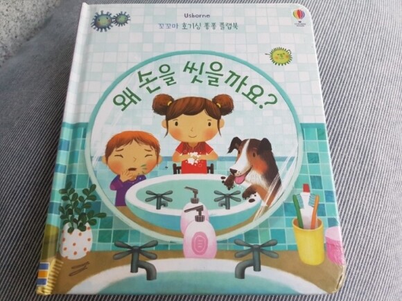 어스본 꼬꼬마 호기심 퐁퐁 플랩북 『왜 손을 씻을까요?』와 함께 재밌게 생활습관 익히고 있어요!
