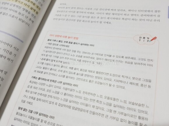 특히 이 책에선 소개해 주는 오감놀이 에서 부모의 역할이 어느정도 필요한지 어느선까지 참견해야하는지 알려주기에