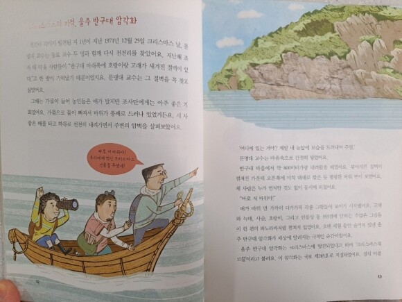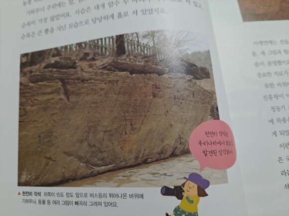 천전리 각석이 일년에 반 이상 물속에 잠기며 훼손이 되고 있다고 하니 어서빨리 천전리 각석을 보존할 수 있는 대책이 있었으면 좋겠다는 작가의 마지막 말이 너무너무 아쉬워요. 우리나라의 역사를 대변하는 유물들을 발견했지만, 구체적인 보존 대책이 뒤따르지 않는다는 현실을 그대로 보여주고 있는 것 같아서 말이에요.
