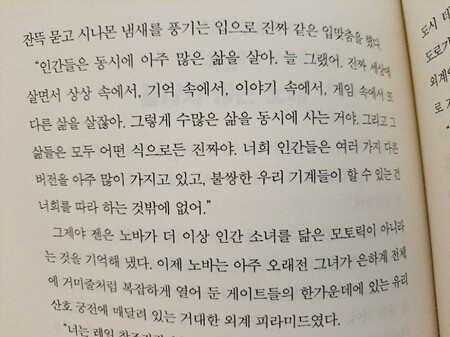 그 책에서 더지는 질문은 노바와 같은 존재가 사람일까? 아닐까?에 대한 묵직한 질문이었다.