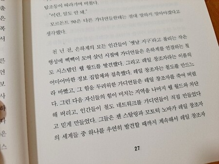 인공지능을 가진 노바, 그리고 가디언들 모르바등이 보여주는 인간미는 이 책의 또 다른 재미이며