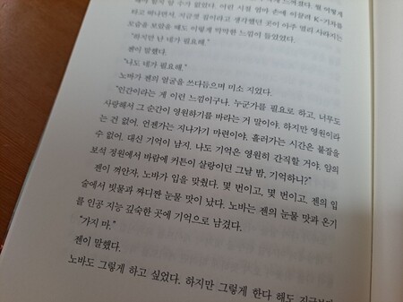 서로가 서로를 필요로 하지만 자신이 변한 것을 인정하고 인간이라는 경계에서 자신을 다시 바라보는 노바를 묘사하는 부분이 참 마음이 애렸다.