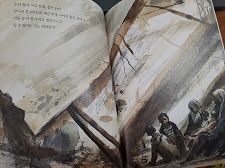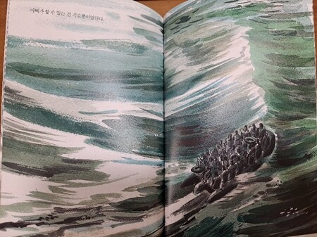 위험한 바닷길인걸 알지만, 바다의 깊이 또한 알지만 아이를 위해 배를 타야만 했던 그리고 지금도 수 많은 난민이 더 안전한 세상을 향해 목숨을 걸고 바다를 찾는 다는 것을 얇지만 두꺼운 바다의 기도로 온전히 느낄 수 있었다.
