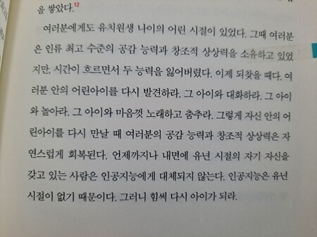 그렇기에 우리는 인공지능 시대에 '공감 능력'과 '창조적 상상력'이 인간이 갖춰야 할 필수적인 능력임을 알 수 있다.