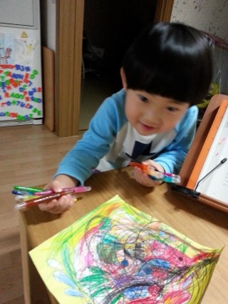 34개월된 작은 아이는 거의 낙서 수준이기도 하지만