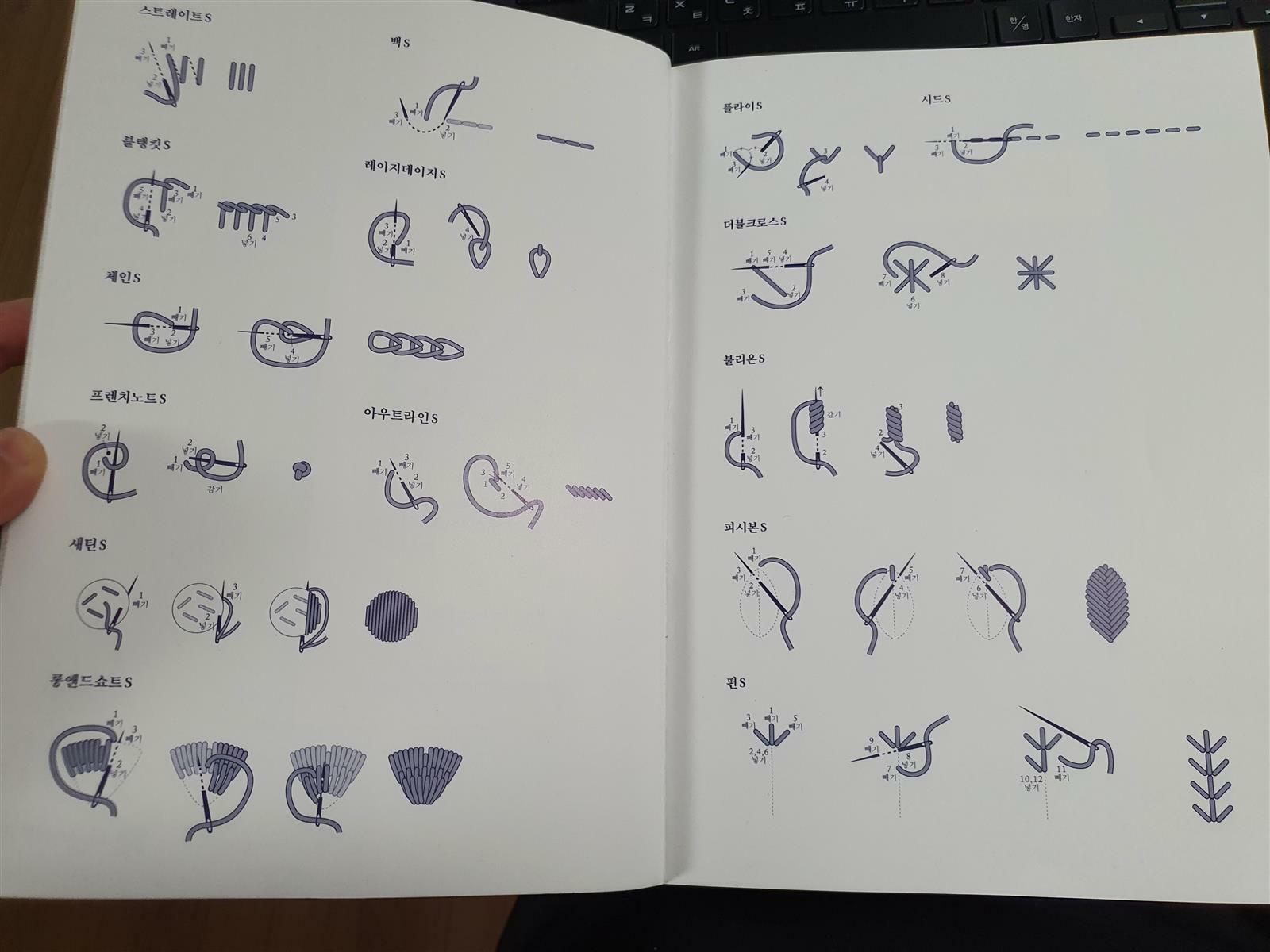 기초 자수책이 아닌 책들도 대부분.. 몇십쪽 정도는 스티치 기법에 할애한다.