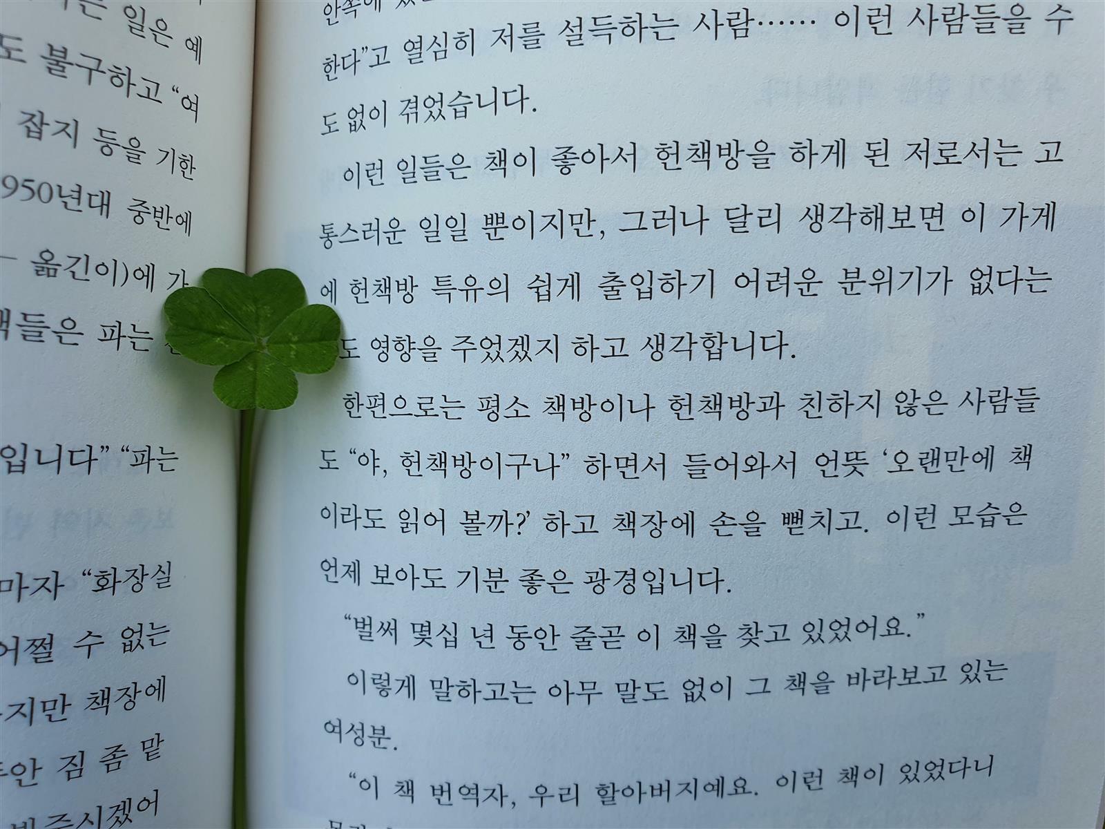 아이쿠, 책 사진을 찍다가 네잎 크로버를 발견했다.
