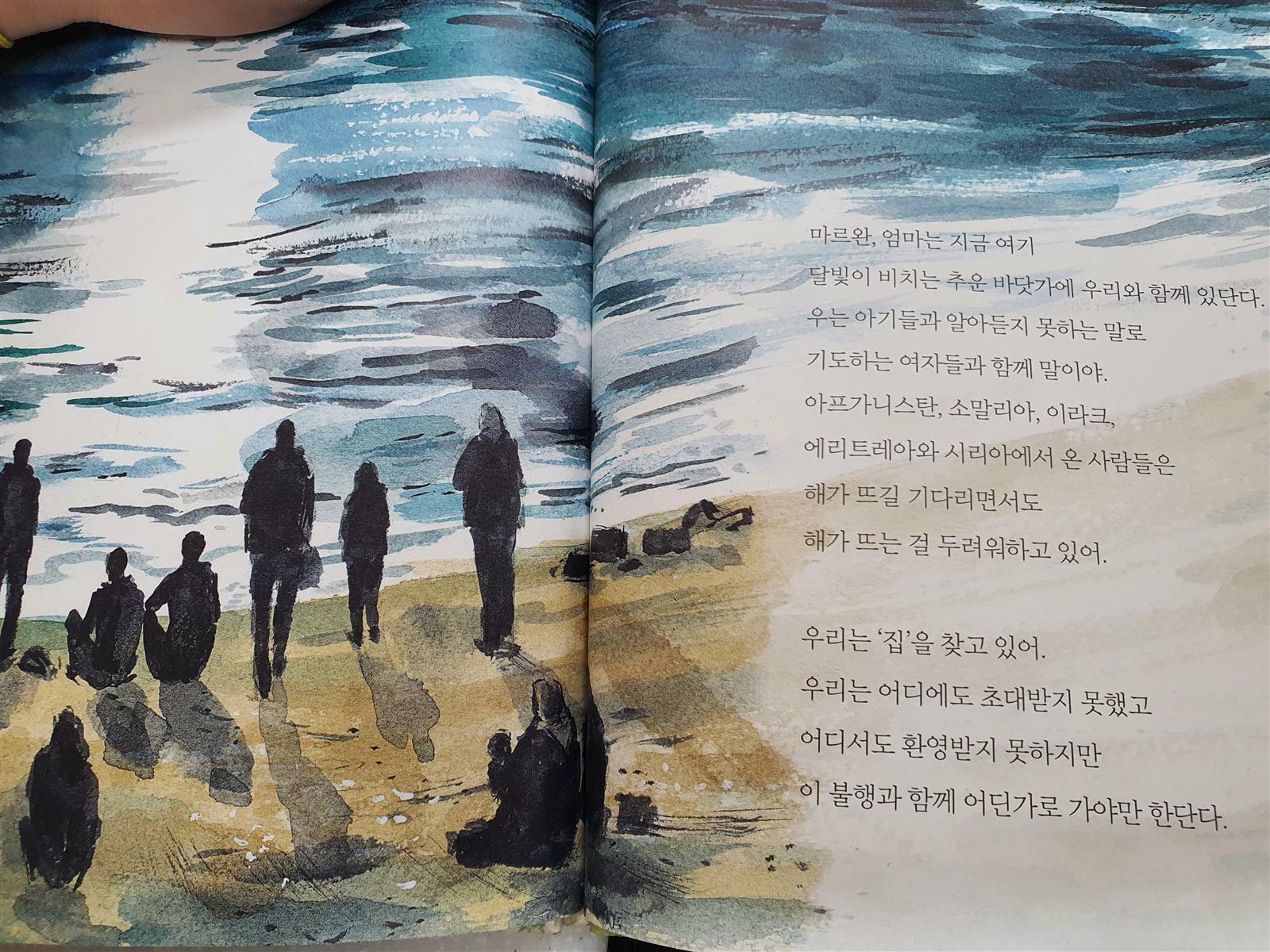 난민이란 주제로 그려낸 그림책은 함축된 의미가 많이 숨어 있었어요.