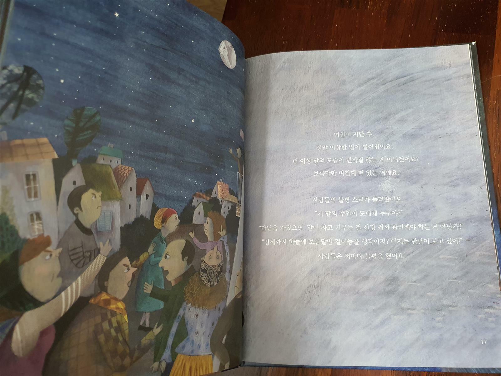 그러고 몇일이 지나도록 보름달인 달이 모양을 바꾸지 않자 사람들이 불평을 했어요.