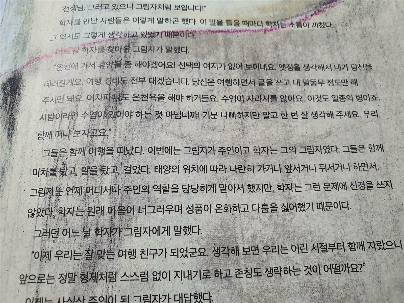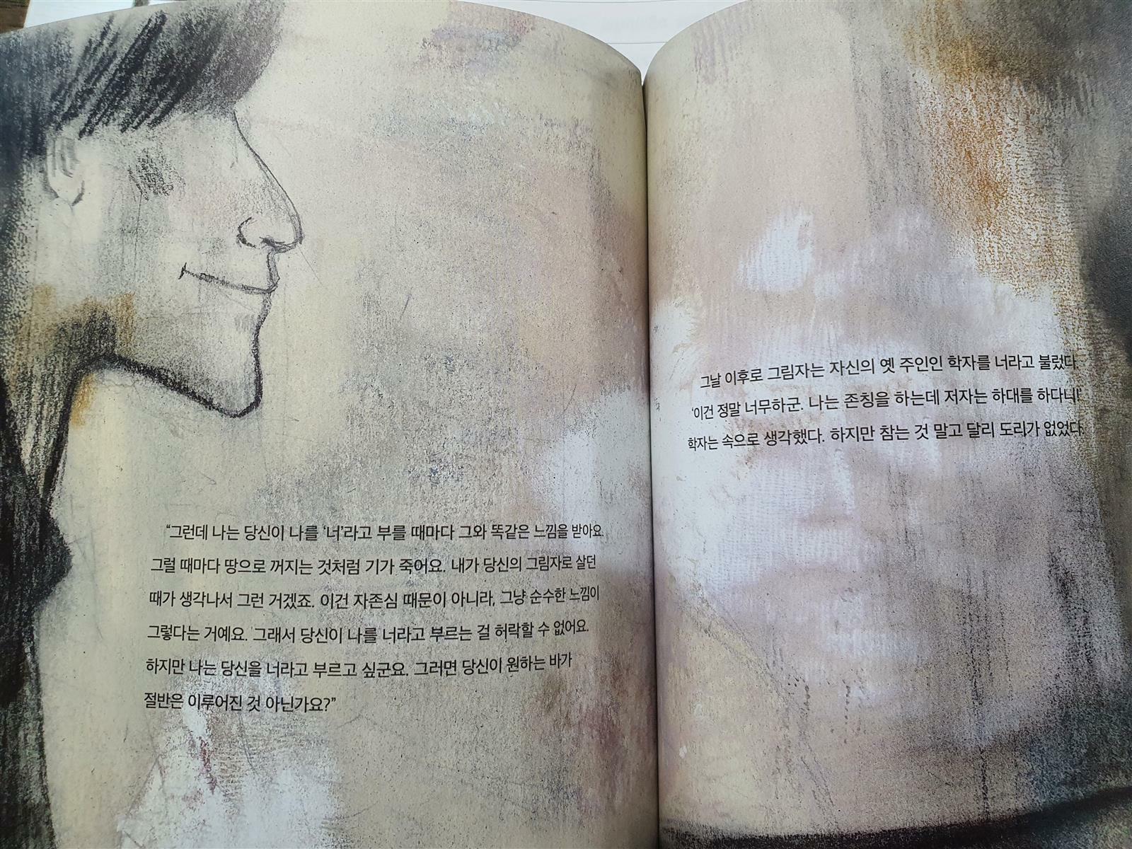 그림자가 사람이고, 사람이 그림자인 듯 생각이 드는 그림이 너무 생생한 느낌을 준다.