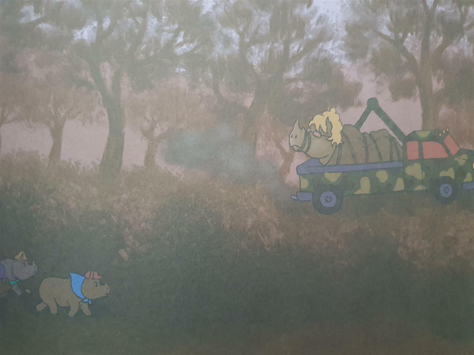 어느날 갑자기 보이기 시작한 길고 검은 막대기를 들고 다니는 무리가 결국엔 코뿔소 선생님을 잡아간다.