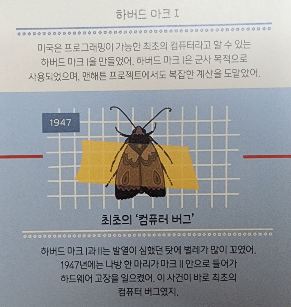 연표의 장점은 아무래도 연도별로 컴퓨터의 발전을 어떻게 이루졌는 지에 대해서 한 눈으로 볼 수 있다는 것이죠. 또한 자녀가 책의 내용을 전체적인 흐름으로 정리할 수 있기 때문이예요.