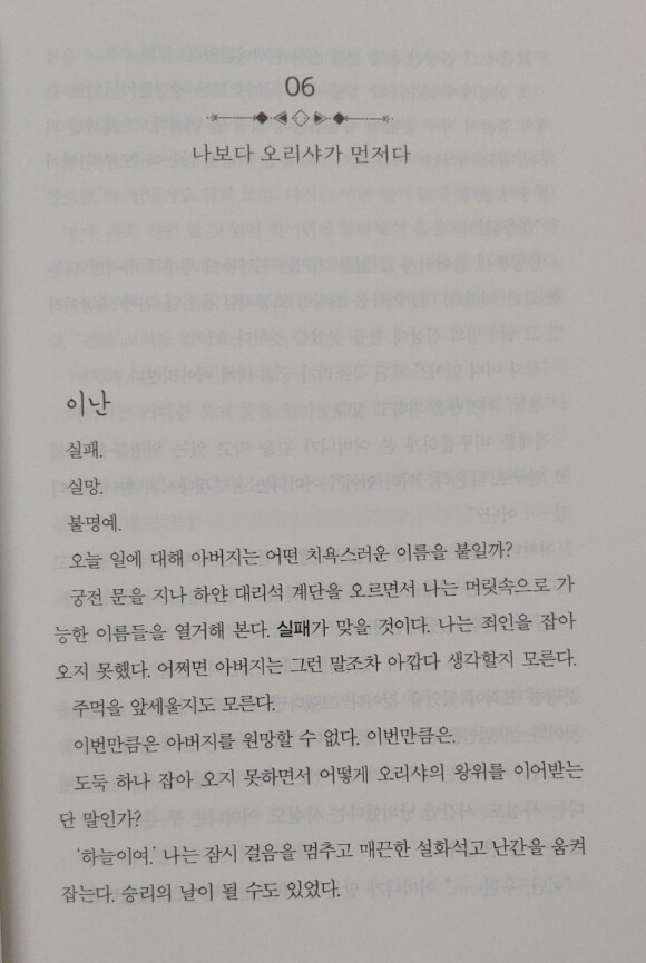 이 책은 주인공이자 표지에 있는 하얀 머리칼을 가진 소녀 제일리와 왕의 딸이지만 제일리를 도와 마법을 되찾기 위해 고군분투하는 아마리 공주, 그리고 그런 제일리 일행을 뒤쫓는 왕자 이난, 이렇게 세명의 시점이 번갈아가면서 등장하게 된다. 마법을 되찾는 여정을 떠나는 것도 흥미진진하지만, 이들간의 얽히고 설키는 관계도 꽤나 볼만하다. 볼만하긴 한데, 그 관계들 속에서 울화통 터지는 일이 많다는 것은 안비밀.