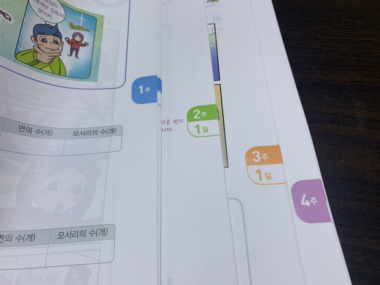 1주차부터 4주차까지 오른쪽 옆에 색깔별로 구분되어 있네요.