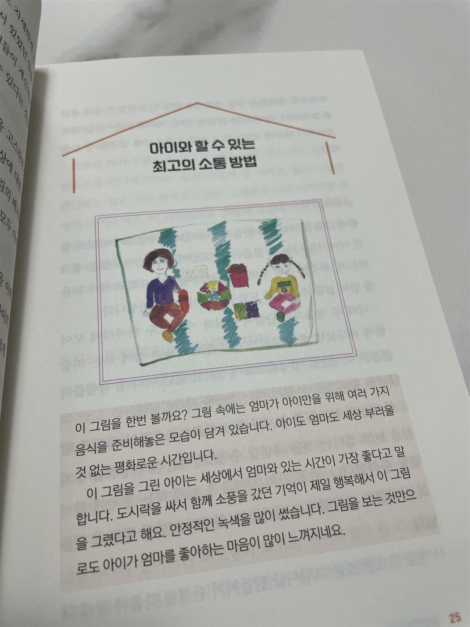 하루하루 커가는 아이를 위해서 그림육아를 해주고 싶었어요 그래서 10개월인 아이지만 엄마는 미리 공부를 하기로 했어요 그림이라는건 무궁무진하다고 생각하는 사람이기 때문에 미술은 공부할 수록 많은 게 보여서 좋더라고요 아직 표현하는 것을 못하는 아기이기때문에 할 수 있는 건 없지만 미래에 우리아이가 그림으로 표현하는 것을 놓치지 않고 싶어요 책을 읽으면서 학창시절 짝꿍이 생각나더라고요 분노조절장애, ADHD을 가지고 있어서 수업시간에 틈만나면 책을 찢거나, 책상을 부수기도 했던 기억이 나는데요 그렇다보니 그때 담임선생님의 태도, 말 등이 기억나곤해요 모든것이 옳았다면 좋겠지만 몇몇의 상황 속 태도와 말들은 옳지 않았다는 것을 생각하게 되었답니다 물론 그 친구는 그림과는 거리가 멀어 해석할 것도 없었지만 책을 읽으며 그때 그 시절이 많이 나네요 그림으로 표현할 수 있는 게 많은 만큼 사소함을 놓치지 않고 아이의 미래를 위해 같이 이야기하고 소통하는 시간을 가지는 엄마가 되고 싶은 마음이예요 비교적 쉽게 느껴진 책이라서 자주 들여다보고자해요 사례들로 이야기를 이끌어가고 길게 나눠져 있지않고 짧게 나눠져 있어서 육아하면서 읽기도 좋더라고요 제 아이의 올바른 자아형성을 위해, 올바른 그림육아를 위해 이런 책이 많아지면 좋겠어요 하루하루 성장하는 아이를 위해 사소한 것도 놓치지 않고 아이의 미래를 위해 함께하자고요~^^ 출판사로 부터 도서를 제공받아 직접 읽고 주관적으로 작성한 리뷰입니다