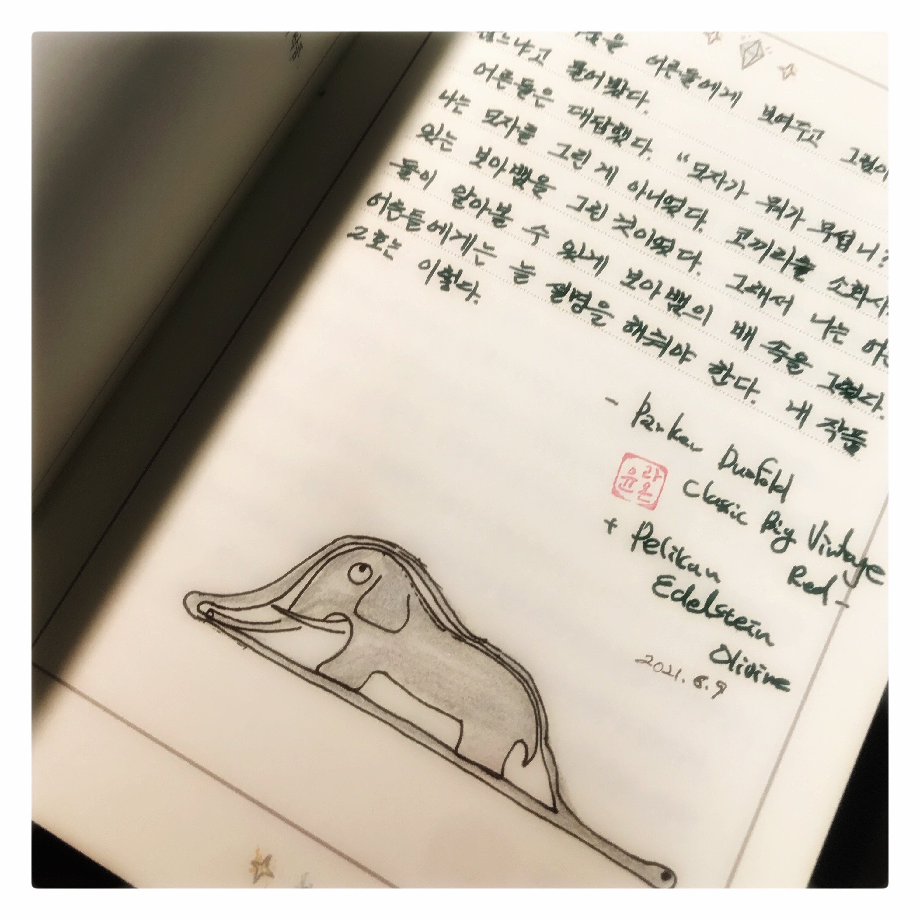 작년초 학위취득 선물로 몽블랑 ‘어린왕자’를 받았다. 146바디를 기본으로 한 ef촉으로 선물 받았는데 그때 몽블랑과 콜라한 로즈버건디색 표지 어린왕자 책자였다. 몽블랑 어린왕자만년필로 필사해보고 싶은 책이었으나, 차일피일 미루다 필사는 까맣게 있고 있었다.