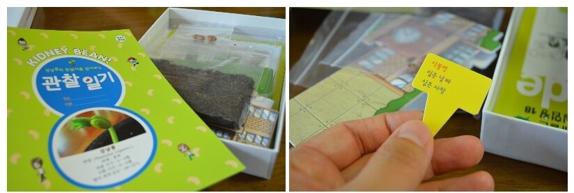 강낭콩을 기르고 관찰일기를 적을 수 있는 실험키트 포함구성이랍니다