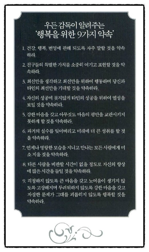 마지막으로 소개하고픈  "존 우든의 삶의 철학이 담긴 행복을 위한 9가지 약속" 을 소개한다.