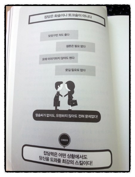 자연스러 지게 되는 이 잡담력을 익힐 수 있는 책 < 30초만에 어색함이 사라지는 잡담이 능력이다.> 였다.