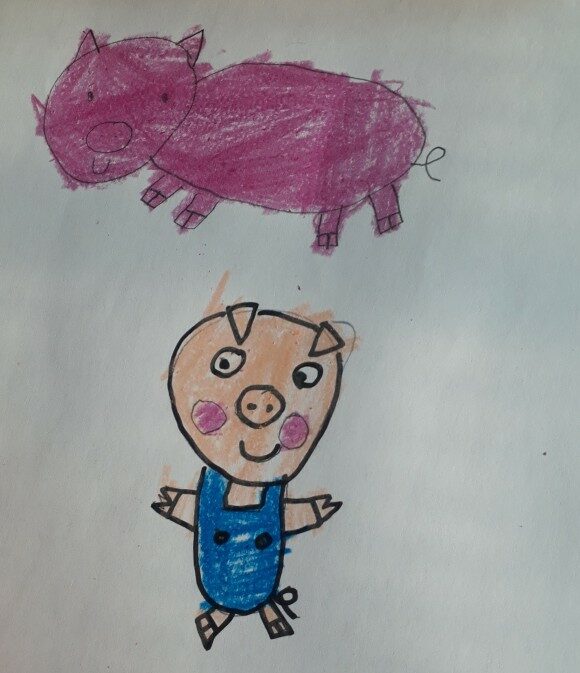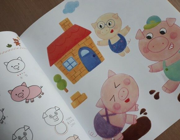 책 넘겨보더니 아기돼지 삼형제에 꽂혀 열심히 그렸답니다.