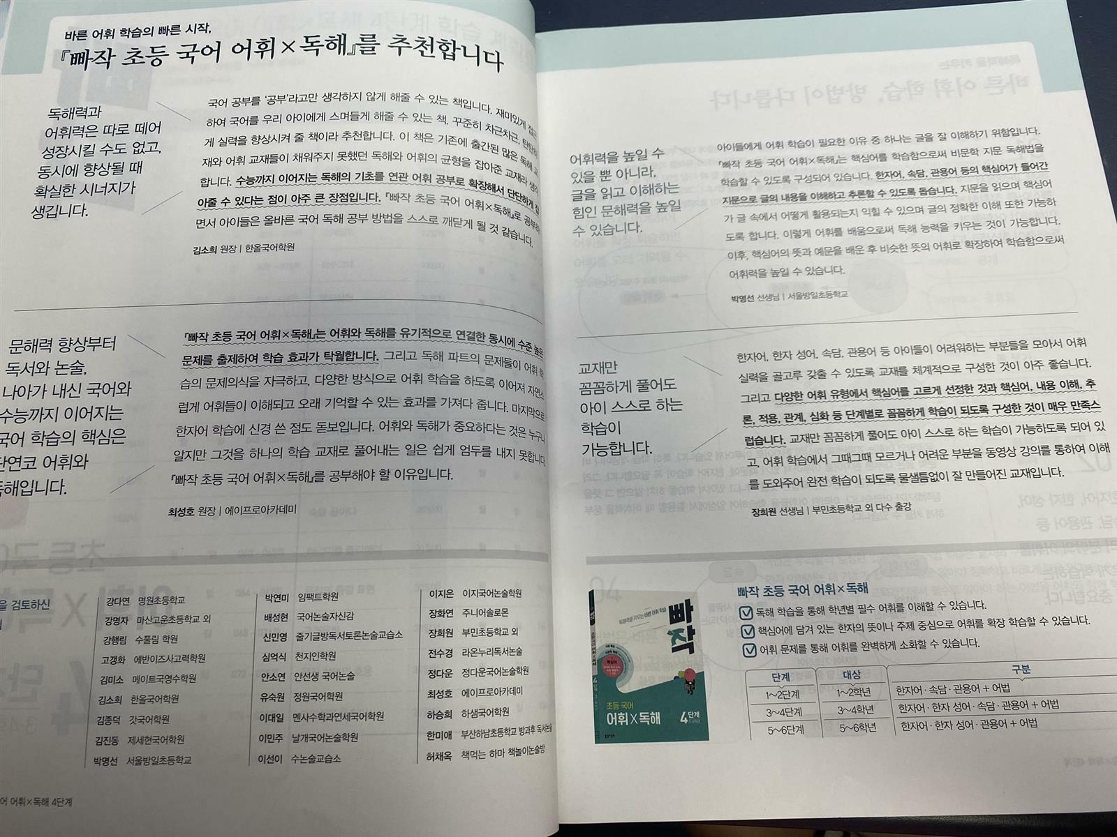 빠작 어휘 독해 4단계에서는 한자어, 한자성어, 속담, 관용어, 어법들을