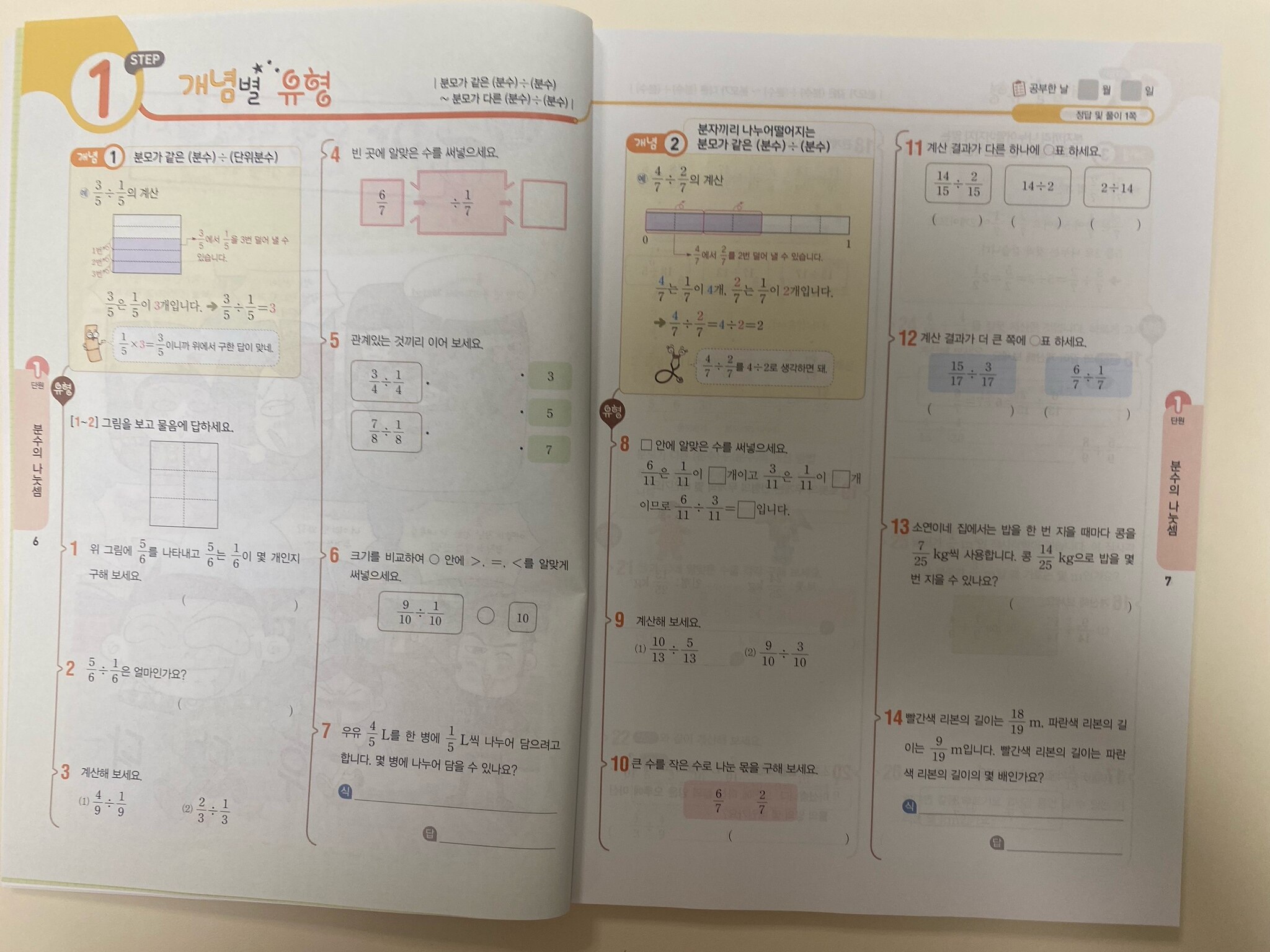 수학리더 응용·심화단계로 가기 전에 다양한유형문제로 실력을 탄탄히 다지고 싶을때 필요한 유형서 [수학리더 닥터유형 6-2] 을 만나보았어요! 처음에 분수의 나눗셈으로 나오는 닥터 유형 탐정일지! 유형 탐정이 단원에서 중요한 것들을 콕콕 찝어서 알려줘요! 중요한 핵심개념이나 자주 틀리는 유형들을 이야기해주니 - 오답을 안나오게 한번더 췍췍췍크~~~ 재미있게 만화로 풀어주니 아이가 개념을 한번 더 짚어가봅니다. 초등 수학 문제집이 다양한게 있는데 천재교육은 워낙 유명해서 믿음이 가더라구요! 거기에~ 부담없이 공부할 수 있는 양과 스스로 공부습관을 들일 수 있도록 체계적으로 되어 있어서 좋아요 개념에 따른 교과서 유형 문제를 수록해서 연산이나 이해 기초문제를 반복연습하고 개념별 유형중 핵심 유형을 진단하는 유형 TEST를 제공해서 실력을 점검하지도 하지요! 문제해결강화학습 기본문제에서 변형, 문장제 문제까지! 꼬리를 무는 유형! 문제는 정말 다양하게 푸는 것이 중요하잖아요~ 그래야 적용할 수 있는 능력도 생기구요! what -> How -> solve 단계로 묹를 분석하고 해결하는 유형 하나의 유형을 반복해서 연습하고 조금더 변형되고 어려운 문제를 계속 추가해주는 형태로 되어 있어서 점진적인 학습도 가능하고 자신감도 UP 하게 해주는거 같아요! 특별학습도 빠질 수 없지요! 특별학습으로 앞 단원 내용을 잊기 전에 다시 한번 풀어보면서 기억하고 요즘 창의 코딩 융합 관련 문항이나 이야기를 접해 볼 수 있도록 되어 있어요! 그래서 이 한권으로 해결~^^ 정답해설지도 자세하게 설명되어 있어서 내가 무엇이 부족한지 무엇을 실수 했는지 알수 있어서 좋은 거 같아요! 엄마표 공부도 가능 강추강추해봅니다!!