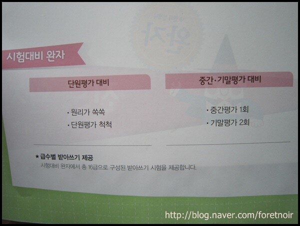 그리고 시험 대비 완자로 중간 평가, 기말 평가,