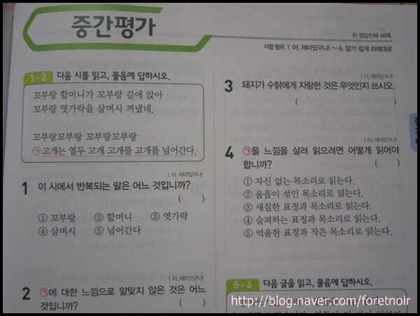 단원이 끝나면 쪽지시험이라고 간단한 단원평가를 보기 때문에