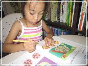 " 왜 나는 일곱살인데 여섯살 문제집을 푸는거야?"하고 묻네요.