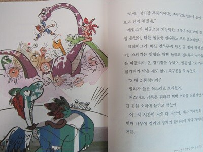표지만 보고도 " 와~재미있겠다.나도 공룡타고 축구해보고 싶다~"