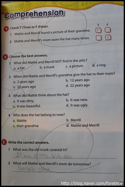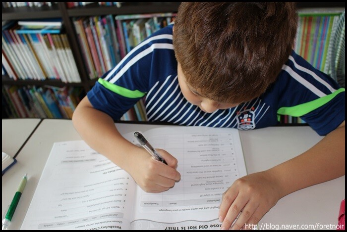 민서가 한 동안 영어에 고전을 면치 못했어요.