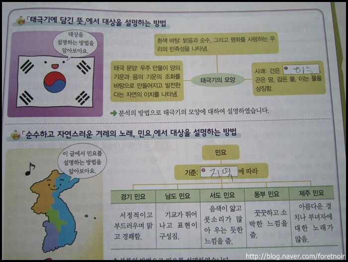 국어 및 국어 활동 교과서에 대한 지문설명과 다양한 문제들을 풀면서