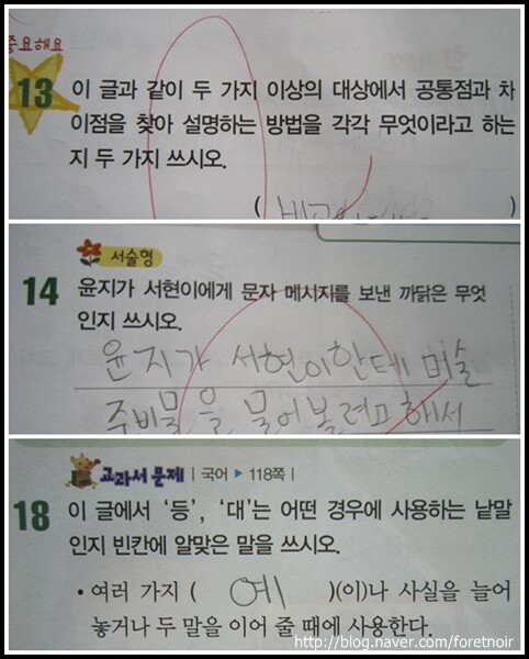 간단한 수행평가를 본다고 해서 간만에 국어공부를 했네요.