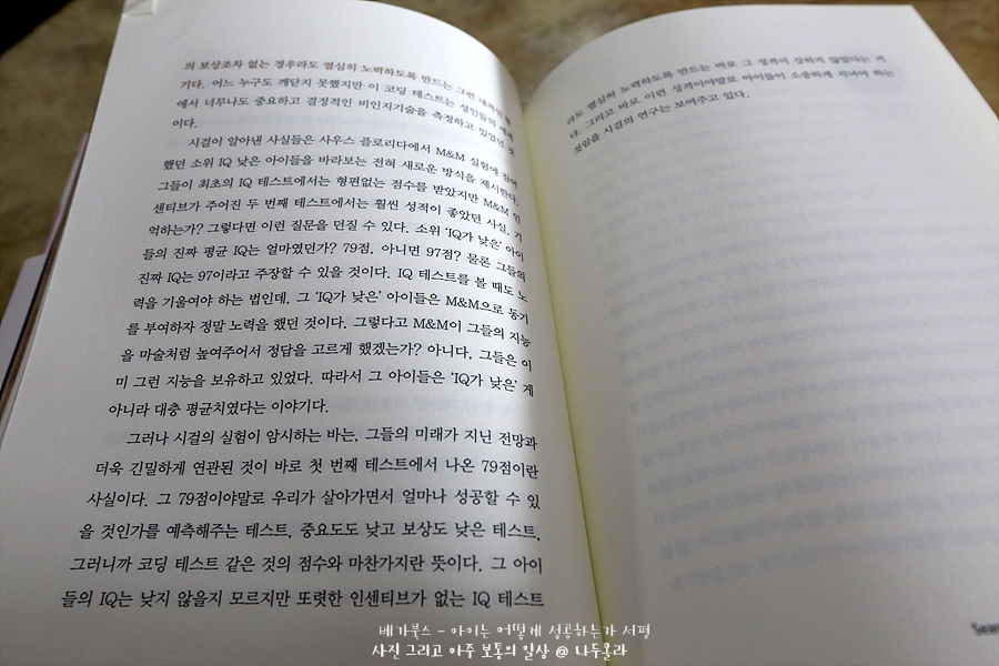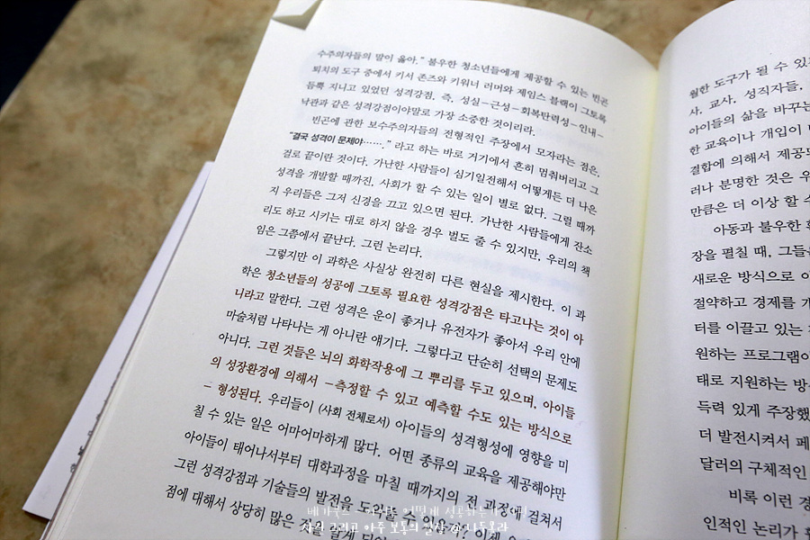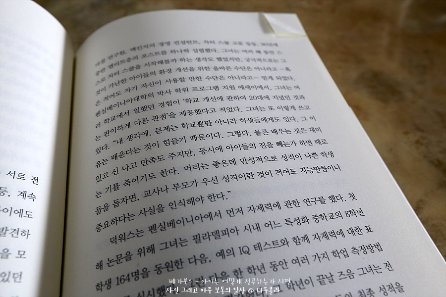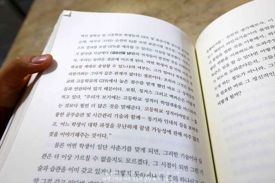 성공하는 삶에서 가장 중요한 덕목은 IQ가 아니라 뚝심, 호기심, 성실성, 낙관적 심성, 자제력등 성격 강점에 있다고 설명하고 있다