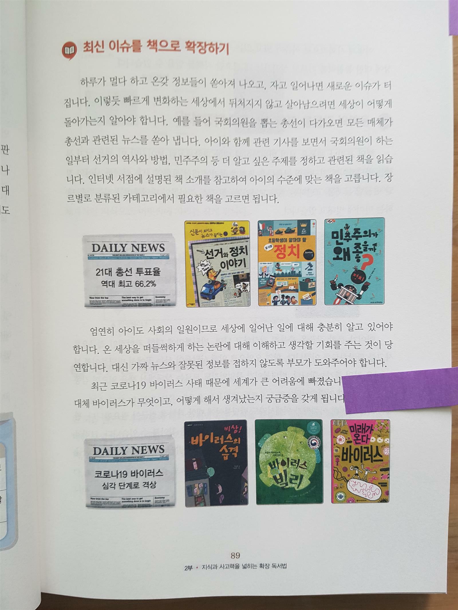 아이들이 뉴스나 신문등을 보더라도 제대로 이해할 수 있도록 아이들 시선으로 제대로 이해할수 있도록 도움이 될수있는 관련책들도 소개되어 있어서 나처럼 아이들에게 시사이슈를 접하게 해주고 싶은데 방법을 몰랐던 학부모들에게는 큰 도움이 될 것 같다.